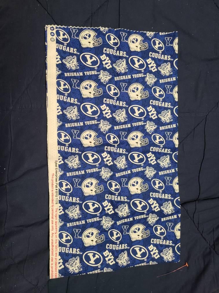Cut from the bolt. We now stock the BYU blender fabric as well.